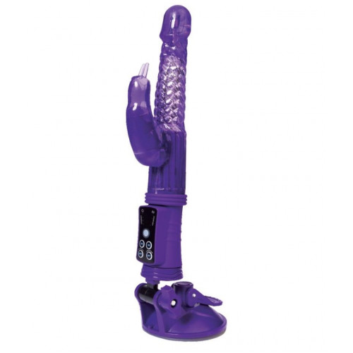 Фиолетовый вибратор с клиторальным стимулятором и крепкой присоской в основании