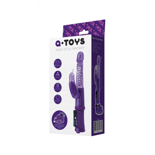Вибратор A-Toys с функцией вращения ствола и мощным клиторальным стимулятором. Имеет 8 режимов вибрации и ротации, скорость которых удобно управляется кнопками на рукояти игрушки. Вибратор выполнен из высококачественного, легкого в эксплуатации, нетоксичного, гипоаллергенного, не пористого материала TPR. Мощная присоска позволяет закрепить вибратор на любой вертикальной или горизонтальной гладкой поверхности. В стволе девайса размещено несколько рядов металлических шариков, которые многократно увеличивают возбуждающий эффект. Вибраторы A-Toys созданы для того, чтобы доставить незабываемое удовольствие! Длина от пульта управления - 16,5 см.