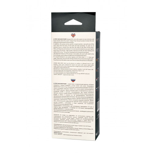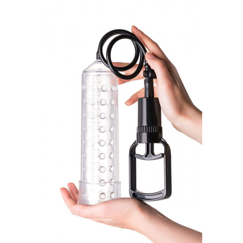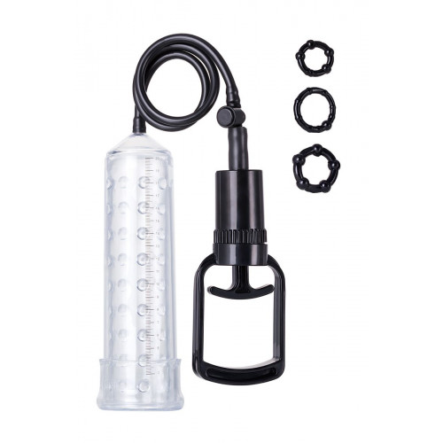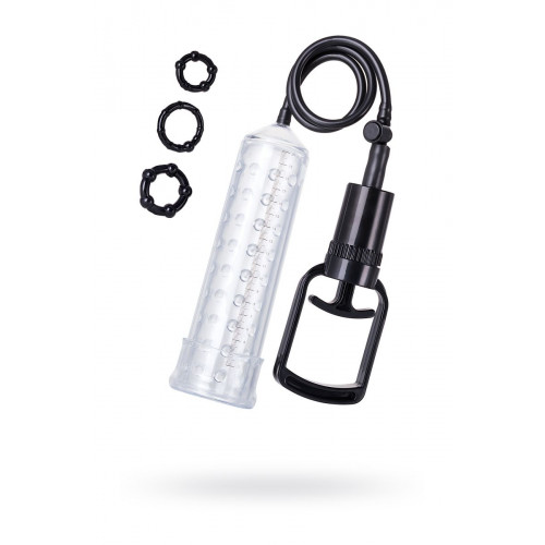 A-Toys Vacuum pump — серия помп, созданная для мужчин, которые стремятся к новым победам и точно знают чего хотя. Регулярное применение помп Atoys способствует увеличению размеров полового члена и усиливает эрекцию. Высокое качество материалов, используемых при производстве помпы, сделают применение изделия приятным и безопасным. Помпа оснащена мощным насосом. Кроме того, отличительной особенностью данной помпы является съемная мягкой вставка с рельефом в виде шариков, что позволяет дополнительно массировать пенис. В комплекте: помпа, 3 эрекционных кольца различного диаметра.