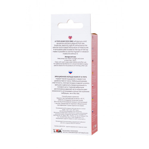 Эрекционное кольцо Kear от А-Toys подарит яркие ощущения и совместное удовольствие от секса. Небольшой размер, эластичность, плотная посадка позволят усилить эрекцию и увеличить продолжительность полового акта. Съемная вибропуля расположена в верхней части игрушки дает возможность использовать кольцо как в режиме вибрации, так и без нее. Внутренний диаметр - 2,2 см.