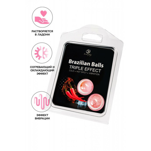 Бразильские шарики с тройным эффектом это уникальное удовольствие, объединяющее сразу три воздействия в одном продукте. Эти шарики созданы для тех, кто ищет новые ощущения и хочет сделать свои чувственные моменты более насыщенными и разнообразными. Попробуйте контрастную игру температур, добавьте нотку пряности и ощутите легкую вибрацию, чтобы сделать прелюдию и эротические игры ещё более захватывающими. Чтобы воспользоваться всеми их преимуществами, просто смочите руку водой и обнимите ладонью шарик. Тепло и влажность активируют его, и через 3–5 минут он растворится, высвобождая массажное масло. Этот тройной эффект — холод, тепло с пряной ноткой и вибрация — стимулирует ваши чувства, создавая ощущения, которые невозможно забыть. Испытайте мощное сочетание трех эффектов и откройте для себя новое измерение удовольствия с бразильскими шариками! Тройное воздействие: холодный, горячий пряный и эффект с вибрацией для усиления ощущений. 2 бразильских шарика по 4 грамма каждый.