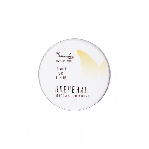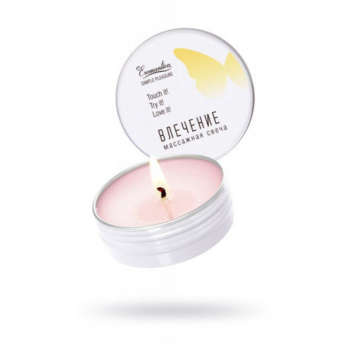 Коллекция косметики для массажа Eromantica Simple Pleasure — это натуральные массажные масла в удобном формате. С ними ты можешь создавать романтическую атмосферу и наслаждаться роскошным уходом в любом месте и в любое время. Массажная свеча Eromantica «Влечение» — релакс и уход в удобном формате. Как использовать: зажги свечу. Через 5-7 минут погаси ее и нанеси образовавшееся масло на тело легкими массажными движениями.