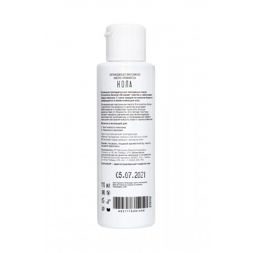 Коллекция температурных массажных масел Eromantica Sensual обнажает чувства и увеличивает градус желания. С ними каждое мгновение близости превращается в захватывающую игру. Охлаждающее массажное масло Eromantica «Кола» с ароматом популярного напитка усиливает возбуждение и позволяет получить больше удовольствия от близости. Его легкая текстура придает каждому движению рук возбуждающее шелковистое скольжение, а охлаждающий эффект повышает восприимчивость кожи к прикосновениям. Сладкий вкус без горького послевкусия делает оральные ласки еще приятней и побуждает к исследованию тела партнера. Встряхни и используй для: Эротического массажа: нанеси на чувствительные участки тела или отдельные эрогенные точки. Подуй на них, чтобы партнер ощутил возбуждающий холодок. Взаимного массажа: нанесите масло на эрогенные зоны, заводите друг друга охлаждающим дыханием или взаимными поцелуями. Оральных техник: нанеси небольшое количество масла, чередуй мануальные и оральные ласки. Храни при комнатной температуре. Избегай поп