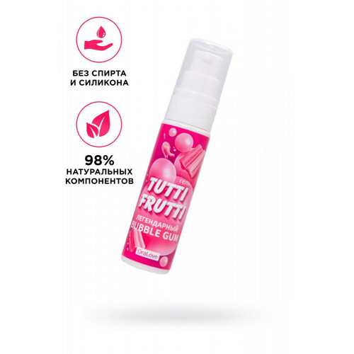 Погрузитесь в мир чувственности и страсти с Tutti-Frutti! Этот интимный гель на водной основе привнесет яркость и разнообразие в вашу сексуальную жизнь и подарит новые незабываемые ощущения. Знаменитый сладкий вкус жвачки и притягательный аромат геля добавят изюминку в вашу интимную игру. Tutti-Frutti BUBBLE GUM обладает мягкой тающей консистенцией, легко наносится на кожу и приятно скользит, при этом он не оставляет липкости и неприятных ощущений. Этот гель эффективно увлажняет, придает аромат и не нарушает естественную микрофлору интимных зон. Он подходит для использования в качестве лубриканта не только для оральных ласк, но и для всех видов интимной близости. Tutti-Frutti совместим с изделиями из латекса и синтетических материалов. Он легко смывается водой, и безопасен для проглатывания. Придерживайтесь принципа умеренного потребления для вашего благополучия во время использования. Не липнет после нанесения. Легко смывается водой. Объем: 30 гр.