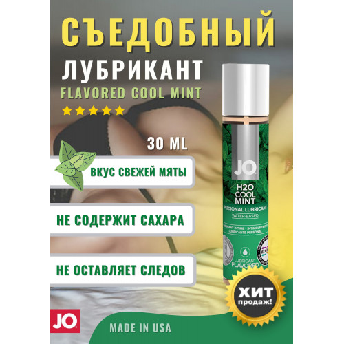 Съедобный любрикант на водной основе JO Flavored Cool Mint H2O - превосходный аромат душистого растения и длительное скольжение. Входят только пищевые ароматизаторы и натуральные вкусовые добавки, которые не содержат сахара, не оставляют послевкусия. Безопасен для применения, при попадании в желудок не вызывает раздражения. Совместим с алкоголем и пищевыми продуктами. Мята - положительно влияет на потенцию,освежает, придаёт силы, пробуждает женскую чувствительность. Не бывает женщин без эрогенных зон, бывает мало мяты! JO рекомендуется во всем мире врачами и фармацевтами. Совместим с любыми презервативами и сексуальными игрушками. Состав: вода, глицерин, натрий-карбоксиметилцеллюлоза, ароматизатор, метилпарабен, пропилпарабен.Объем: 30 мл.