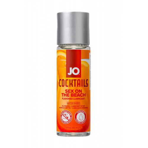 Лубрикант на водной основе со вкусом одного из самых популярных коктейлей - Секс на пляже. Глицерин растительного происхождения в составе. Не содержит сахара, подсластителей и алкоголя. Безопасен для проглатывания и вагинального использования. Не нарушает микрофлору и кислотно-щелочной баланс влагалища. Лубрикант имеет водную основу, но она такая же нежная как силикон, обеспечивает долгое скольжение, никакой липкости, легко смывается водой. Лубрикант совместим с материалами большинства игрушек. JO рекомендуется во всем мире врачами и фармацевтами. Обладает всеми преимуществами фаворита JO H2O, плюс приятный аромат и нежная сладость. Идеален для оральных игр. Совместим с алкоголем. Можно добавлять в напитки, использовать как топинг, смешивать коктейли из разных вкусов. Состав: Вода, глицерин, сорбат калия, гидроксиэтилцеллюлоза, натуральный пищевой ароматизатор, хлорид натрия, лимонная кислота, сукралоза. Объем: 60 мл.