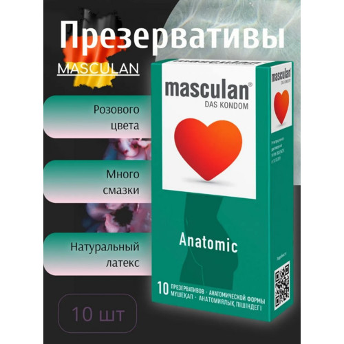 Индивидуальный подход от Masculan к анатомическим особенностям каждого мужчины достигается благодаря презервативам Masculan Anatomic. Это облегающие анатомической формы презервативы с накопителем и особой канавкой, которая позволяет им наилучшим образом адаптироваться к форме полового члена. Нежно-розовый презерватив с легким приятным ароматом и обильным количеством смазки сделает любовный контакт максимально естественным и безопасным. Они обеспечивают максимально естественные и острые ощущения во время интимной близости, при этом сохраняя высокую надежность и безопасность. Masculan – это презервативы премиум-класса, разработанные в Германии с соблюдением высочайших стандартов качества и дизайна. Немецкое производство, высококачественное сырье, и электронное 6-ти ступенчатое тестирование каждого презерватива обеспечивают безопасность и надежность. Размер: длина 19 см, диаметр 5,3 см. В упаковке 10 шт.