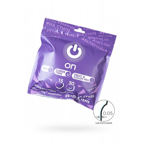 Презервативы On – это немецкие презервативы Высокого качества соответствующие всем европейским стандартам, что обеспечивает исключительную надежность и незабываемые ощущения. Исключительное качество латекса дает чувство комфорта. Лубрикант не имеет запаха, не оставляет следов на одежде, не вызывает раздражение на коже и аллергических реакций. Презервативы On Super Thin (ультратонкие). Ультратонкие презервативы классической формы, с лубрикантом и накопителем. Размер: длина 18,5 см, диаметр 5,4 см, толщина стенок 0.055 мм.