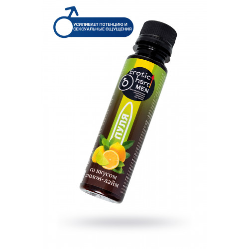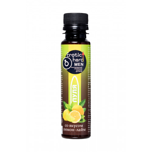 Для мужчин важно оставаться сексуально активными, здоровыми и выносливыми в любом возрасте. Биостимулирующий растительный жидкий концентрат Erotic hard Man Пуля со вкусом лимона и лайма разработан специально для мужчин.За счет натуральных растительных компонентов в составе, Erotic hard Man Пуля оказывает положительный эффект на работу всех основных систем организма.А мощные природные афродизиаки, усиленные L-аргинином AAKG, благотворно воздействуют на половую функцию. Концентрат не содержит сахара, в его составе натуральный подсластитель Сладин 250L,при этом содержание калорий всего 1 Ккал на 100 г. Принимать его полезно для организма, ведь в 10 мл содержится максимально допустимая суточная доза активных компонентов, в отличие от сиропов. Биостимулирующий растительный жидкий концентрат для мужчин Erotic hard Man Пуля продлевают эрекцию, усиливает потенцию и сексуальные ощущения, стимулирует подвижность сперматозоидов и улучшает качество спермы, повышает физическую выносливость.