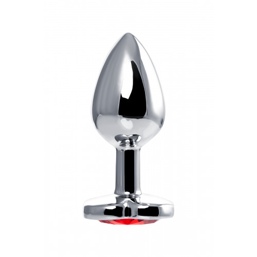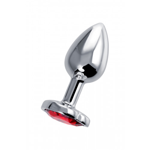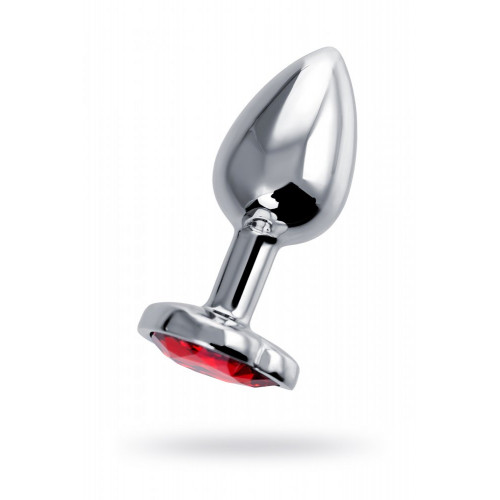 Анальная втулка серебряная кристаллом сердце красный Small 7 см