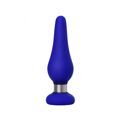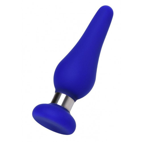 Синяя силиконовая анальная втулка с ограничителем - 10 см.