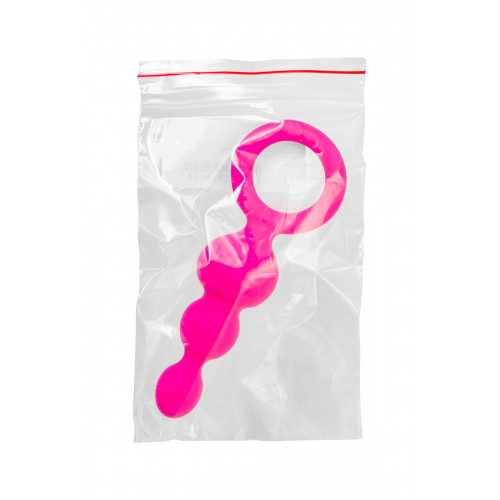 Анальный плаг с кольцом, упакован в прозрачный запаянный пакет. Размеры: минимальный диаметр основной части 1 см, максимальный диаметр основной части 3 см. Общая длина изделия 13.5 см, рабочая длина 9 см. Цвет: розовый.