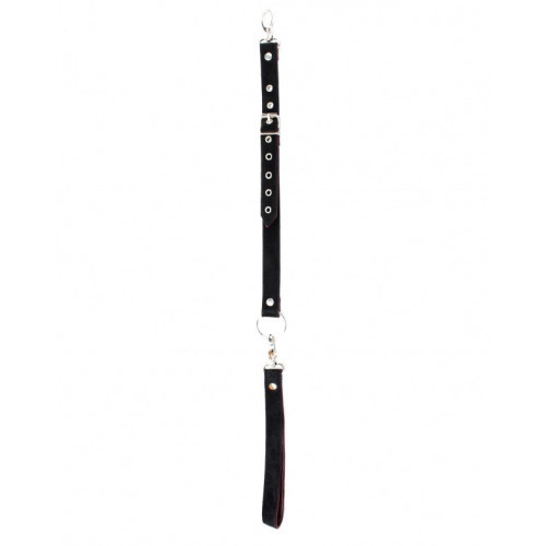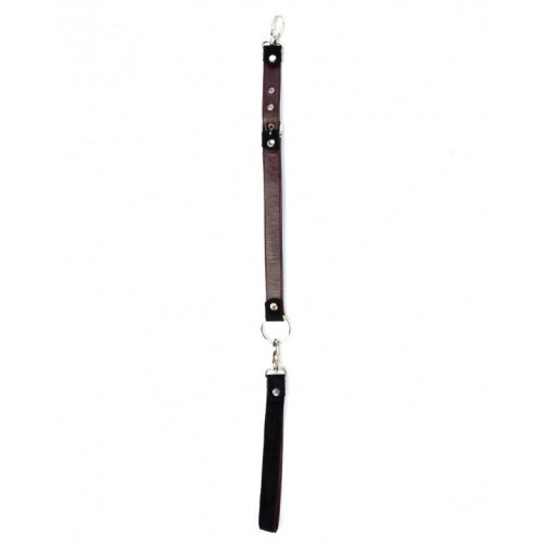 Поводок с одной стороны выполнен из натуральной кожи бордового цвета, с другой стороны из черной замши. На одном конце имеется петелька для руки. Длина изделия регулируется металлической пряжкой и ремешком от 60 до 70 см, карабины и кольцо надежно фиксируют в подчинении, обеспечивая погружение в сладкий мир ограничений. Ширина ремешка - 2 см.