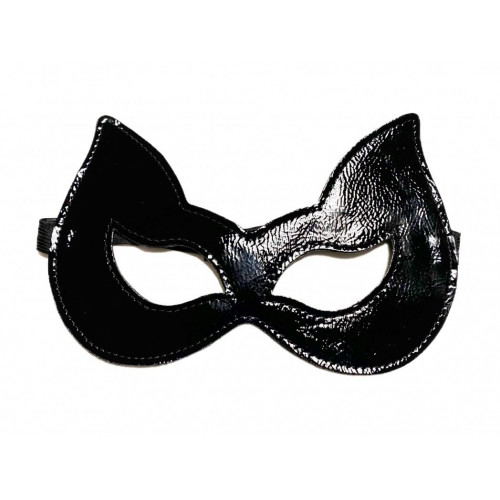 Черная лаковая маска с ушками из эко-кожи