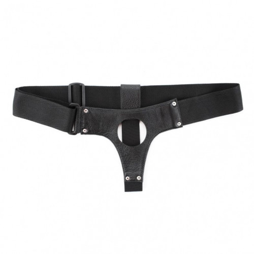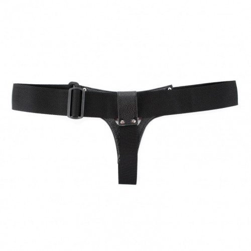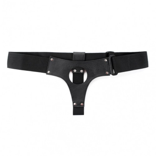 Трусики выполнены из натуральной кожи черного цвета с элементами из прочной ранцевой ленты и эластичной резинки, надежно фиксирующих изделие на теле. Размер удобно регулируется, подойдет на 42-46. Максимально комфортный аксессуар разнообразит любую БДСМ игру. Диаметр отверстия для страпона - 5,5 см.