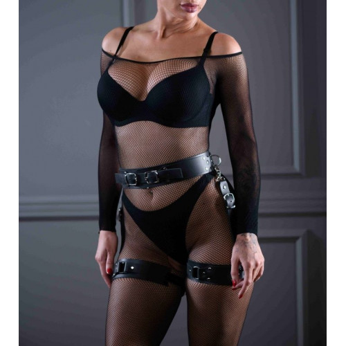 Эффектный сексуальный комплект аксессуаров Sex Game, выполненный из плотной натуральной кожи в черном цвете. Комплект состоит из пояса и гартер, декорирован качественной металлической фурнитурой, регулировка происходит с помощью пряжек. Пояс подойдет на обхват от 70 до 90см, гартеры на обхват от 40 до 60см. Гартеры пристегнуты к поясу с помощью кожаных ремешков, которые тоже регулируются по высоте. Аксессуары Sex Game идеально сочетаются друг с другом, пояс можно носить, как дополнительный элемент в повседневных образах, а можно сочетать с гартерами для сексуальных практик, пристегнуть к нему наручники и ошейник с поводком, Ваша фантазия не ограничена. Восхитительный комплект, который поможет создать неповторимый сексуальный образ! В комплекте: пояс, гартеры.