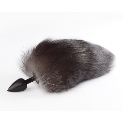 Черная анальная пробка из TPE с хвостом чернобурки (натуральный мех). Длина хвостика - 20-25 см.