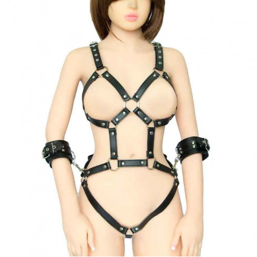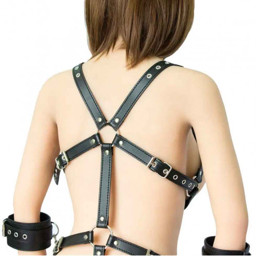 Черное боди-портупея с пристегивающимися наручниками