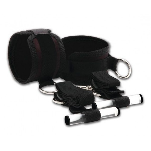 Черные наручники из мягкого поролона, размер регулируется на липучках. Манжеты можно использовать отдельно или вместе со стропами, которые можно закрепить на двери.