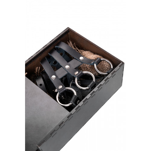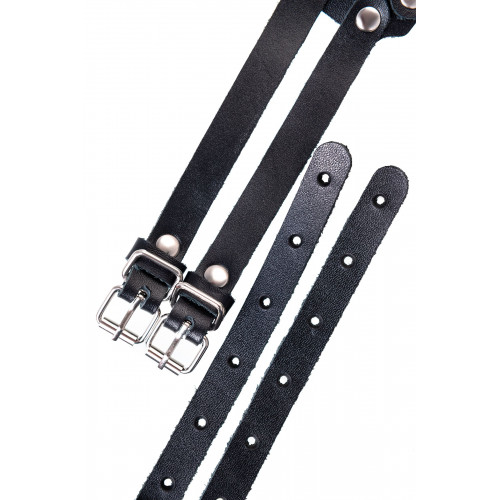 Сексуальный пояс от Pecado создаст будоражащий образ для БДСМ-сессии. Чёрные тонкие ремешки переплетены и соединяются в изящный аксессуар. Ремешки выполнены из мягкой, натуральной черной кожи вручную. Материал тактильно приятный и износостойкий. Металлические заклёпки по всей поверхности обеспечивают надёжность девайса. 3 стальных кольца по центру добавляют дерзости атрибуту. Идеальная посадка на тело регулируется с помощью металлической застежки. Портупея используется для сексуальных, ролевых БДСМ-игр. А также в качестве стильного аксессуара для тематических вечеринок и фотосессий. Универсальный размер.