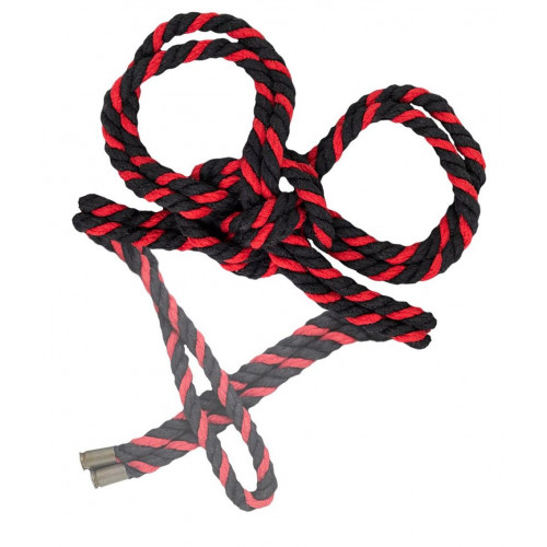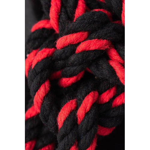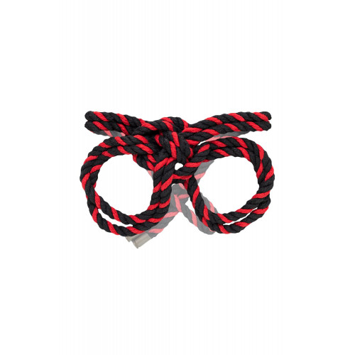 Черно-красные наручники-оковы «Узел-Альфа» из хлопковой веревки