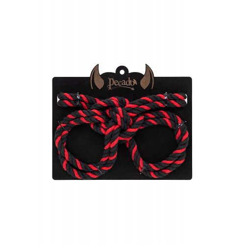 Если Вы в поиске новых пикантных ощущений для ролевых игр, тогда стоит попробовать наручники-оковы «Узел-Альфа» от Pecado. Атрибут для самых горячих сессий сделан полностью вручную. Изготовлен из материла, который не раздражает кожу и устойчив к страстным нагрузкам. Черно-красный премиальный хлопок, гарантирует будоражащие чувство от тактильного прикосновения. Универсальный размер аксессуара подходит как для мужчин, так и для женщин. Наручники-оковы легко надевать и снимать. Надежная крепкая скрутка веревки обеспечивает длительное использование. Благодаря надежному узлу регулируется необходимый захват. Незаменимый вариант для начинающих пар, а также для опытных любителей БДСМ-игр.