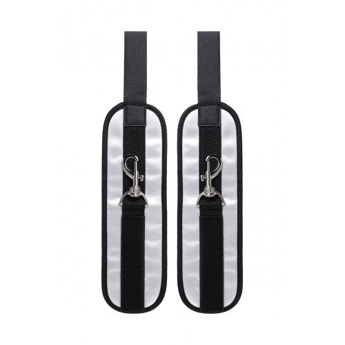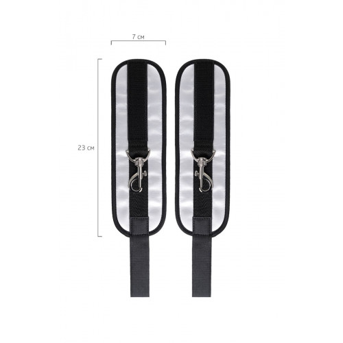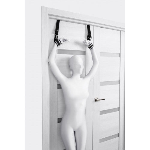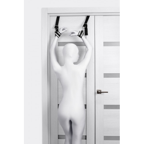 Оставьте наручники и кровать в прошлом веке, пора играть по-взрослому. Фиксаторы для рук на дверь для смелых и терпеливых. Больше позиций для получения удовольствия без силовых затрат! Пластиковые цилиндры фиксируются за дверью, наручники крепятся на запястьях с помощью застежки велкро. Размер легко регулируется ремешками и подойдет для запястий любого размера. Серебряный цвет с черными ремешками смотрится элегантно. Внутренняя часть наручников мягкая и не доставляет дискомфорта во время использования. Фиксаторы с помощью двери дают вам больше свободы для реализации фантазий. Не нужно напрягаться, чтобы удерживать руки вверху, не нужно контролировать своего партнера, если хочется удержать его стоя. Эта оригинальная форма бандажа выведет вас на новый уровень наслаждения с доверием. Длина ремней - 26 см.