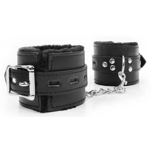 Великолепные наручники под кожу для любителей БДСМ-игр! Внутренняя сторона изделий отделана мехом, который препятствует натиранию кожи. Размер наручников регулируется с помощью ремней. Наручники соединяются между собой металлической цепочкой.