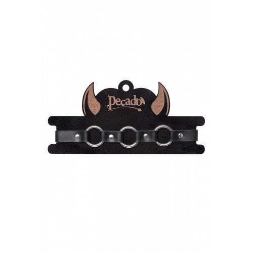 С этим чокером от Pecado Вы разбудите все самые дерзкие фантазии своего партнера! Сексуальный атрибут изготовлен полностью вручную, из безопасных материалов. Тонкий, но хорошо заметный, благодаря насыщенному черному цвету. Натуральная, мягкая кожа вызывает самые приятные ощущения, при контакте с телом. Металлический заклепки и кольца добавляют нотки брутальной изящности изделию. А аромат премиального материала вносит особые нотки возбуждения в атмосферу игры. Удобная металлическая пряжка помогает подобрать подходящий обхват для шеи. Надежно фиксируется и не спадает в процессе. При правильном использовании не оставляет следов на теле. Подходит как для ролевых игр, так и для использования в качестве аксессуара в стильном образе. Ширина - 1 см.