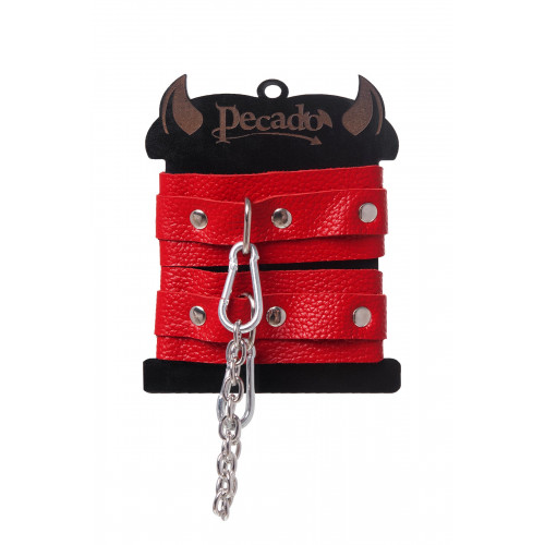 Красные кожаные узкие оковы со скруглёнными углами