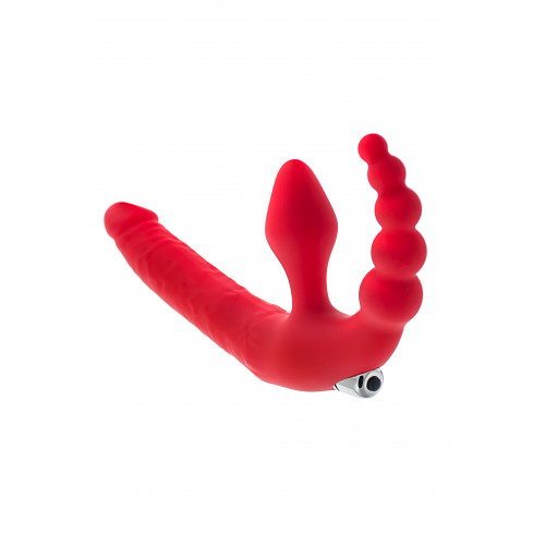 Этот анатомический страпон готов доставить уникальное удовольстие обоим партнерам: его обладательница испытает удовольствие от одновременной вагинальной и анальной стимуляции, а партнер(ша)  от проникновения вибратора, расположенного под идеальным углом для достижения высшей точки наслаждения. Размер: Общая длина изделия 35 см, рабочая длина 15 см, минимальный диаметр основной части 3 см, максимальный диаметр основной части 3 см, рабочая длина дополнительной части 7 см, минимальный диаметр дополнительной части 0,5 см, максимальный диаметр дополнительной части 3,5 см. Вес нетто 0,251 кг. Для более комфортного использования рекомендуем приобрести смазку на водной основе и очищающий спрей Clear Toy 100 мл для обработки изделия.