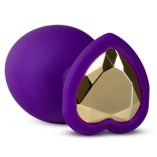 Фиолетовая анальная пробка Bling Plug Medium с золотистым стразом - 8 3 см.