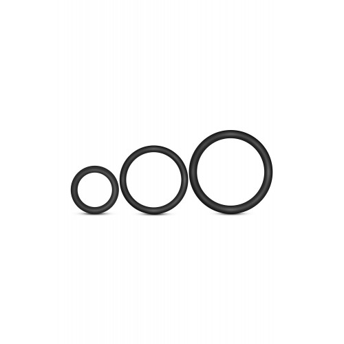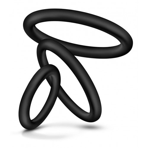 Набор из 3 черных эрекционных колец Cock Ring Set. В наборе три кольца разного диаметра. Можно использовать по одному или вместе. Диаметр колец - 3,1, 4,4 и 5,1 см.