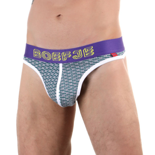 Мужские трусы-тонги с узором-кирпичиками и брендированным поясом