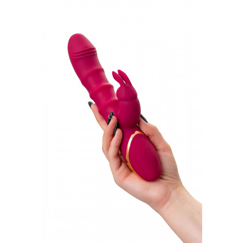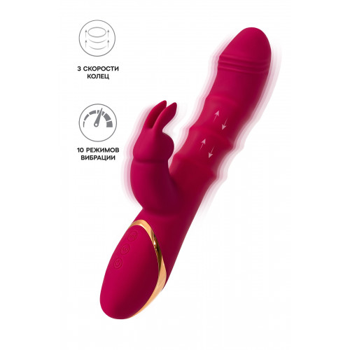 Tenty от Jos — это твой билет в мир чувственных удовольствий и фантазий, где каждый момент наполнен страстью и удивительными ощущениями. Этот виброкролик с двигающимися кольцами создан для тех, кто готов исследовать новые горизонты наслаждения. Классическая форма вибратора идеально подходит для двойной стимуляции, мягко и интенсивно воздействуя на точку G и клитор одновременно. Ты почувствуешь, как твои желания пробуждаются с каждым движением. Фишка Tenty — это подвижные упругие кольца на стволе, которые совершают восхитительные фрикции вверх и вниз, заставляя тебя трепетать от удовольствия. А клиторальный стимулятор в форме забавного кролика со своими нежными ушками нежно касается самых чувствительных точек, выводя оргазмы на совершенно новый уровень. 10 режимов вибрации и 3 скорости движения колец позволяют настроить игрушку под любое твое настроение — от легкой ласки до мощного феерического финала. Изящный, роскошный дизайн с золотыми вставками делает Tenty не просто вибратором, а настоящим аксессуаром для твоих самых интимных моментов. Бархатистый силикон приятно ощущается на коже, а компактные размеры делают использование максимально удобным и приятным. Рабочая длина - 13 см.