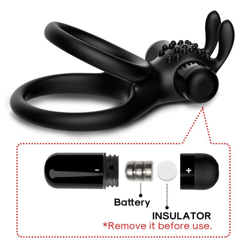 Эрекционное виброкольцо с дополнительным стимулятором клитора и дополнительным кольцом под мошонку. Внутренний диаметр колец - 3 и 3,6 см.