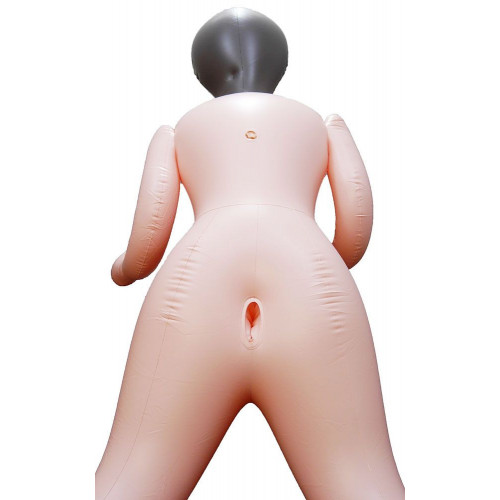 Красивая надувная кукла любви с очаровательным напечатанным лицом и стоячим положением. Она натурального размера, имеет грудь и 3 заманчивые любовные дырочки.