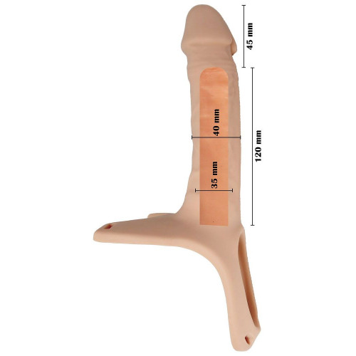 Полый фаллопротез на эластичном ремешке. Удобные эластичные ремни на липучке легко адаптируются к большинству размеров(до 105 см). Удлиняет пенис на 4,5 см. Материал силикон. Рабочая длина - 16,5 см.