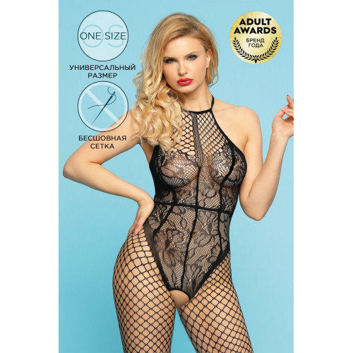 Сногсшибательный бесшовный комбинезон Candy Girl Sabra идеально подойдет девушкам, желающим подчеркнуть бедра и ягодицы. Костюм-сетка с рисунком боди визуально удлиняет ноги, благодаря продуманному дизайну. Ажурное плетение делает образ более женственным, а имитация пояса подчеркивает талию. Завязки на шее позволяют освободить бюст одним движением руки. Интимный доступ и усиленные носочки дарят комфорт при использовании, а эластичность материала не сковывает движения и разрешает двигаться так, как хочется. Размер: One Size. Цвет: черный.