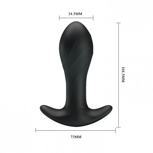 Черная анальная втулка с вибрацией. Широкое ограничительное основание. 12 режимов вибрации. Перезаряжаемая.