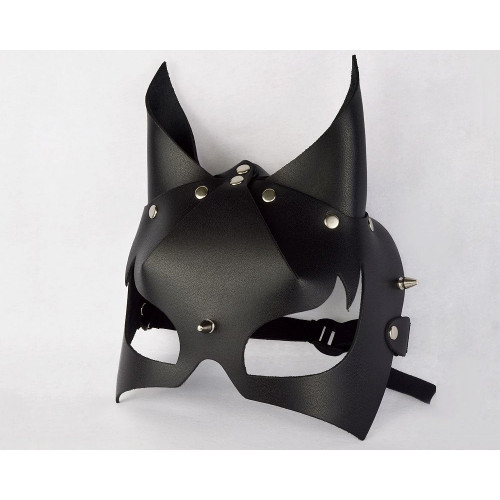 Маска изготовлена из натуральной кожи и имеет объемную форму. Регулируется при помощи резинки и пластиковой пряжки. Металлическая фурнитура имеет никелевое покрытие.