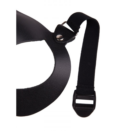 Сексуальная и изящная маска изготовлена из высококачественной натуральной ременной кожи, это придаёт изделию каркасный роскошный вид. Маска легко одевается и имеет универсальный размер за счёт ремешка-резинки, который надёжно и комфортно фиксирует аксессуар на голове. Большой кокетливый разрез под глаза сделает Ваш взгляд томным и страстным, излучающим безграничную сексуальную энергию. Металлические декоративные элементы в сочетании с натуральной чёрной кожей придаёт изделию фетишности.