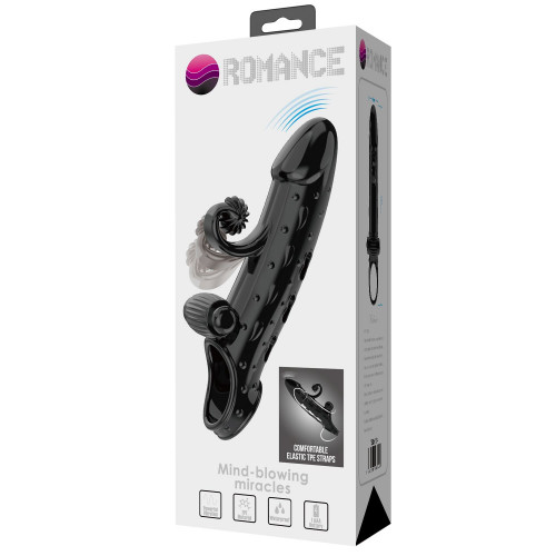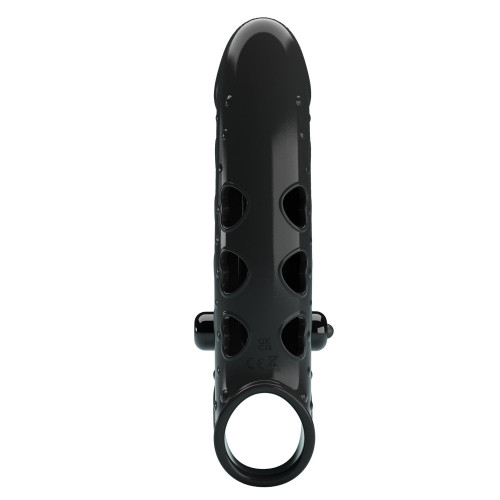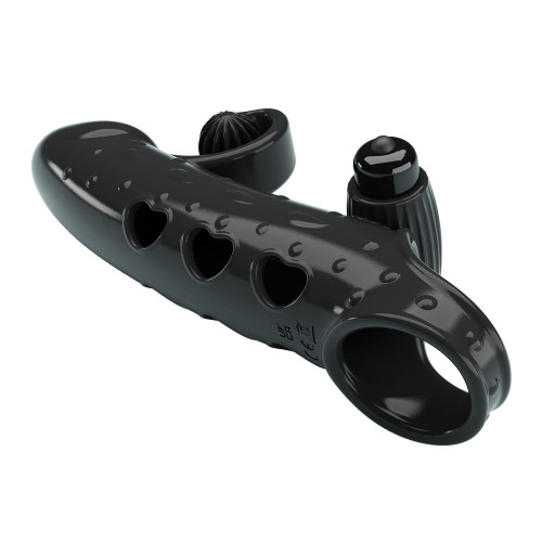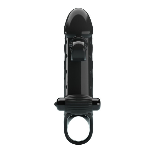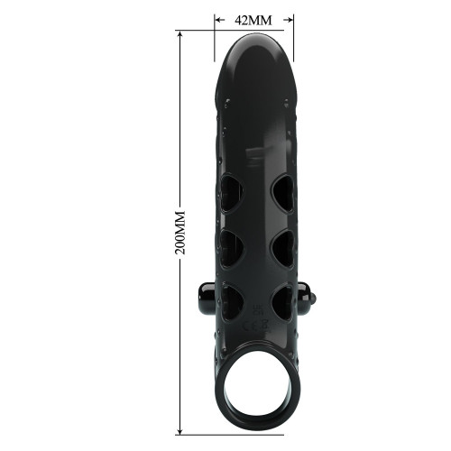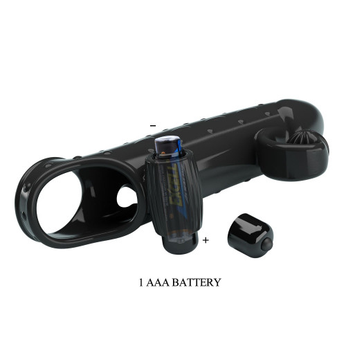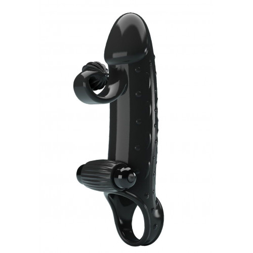 Черная вибронасадка на пенис с подхватом мошонки - 20 см.