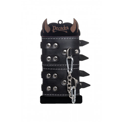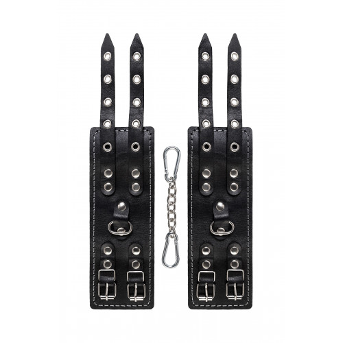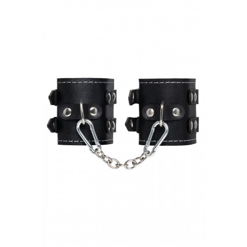 Наличие двух колец и карабинов, соединенных между собой металлической цепочкой, позволяет использовать изделие как раздельно – аксессуар-манжеты, так и как наручники для фиксации. К широким металлическим кольцам также можно присоединить и другие аксессуары при помощи карабинов.