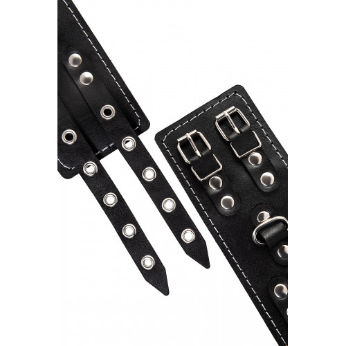 Благодаря универсальному размеру наручники могут использоваться и мужчинами, и женщинами. Размер легко регулируется с помощью металлических пряжек, органично вписывающихся в общий стиль. Длина манжет - 20 см, ширина - 7 см.