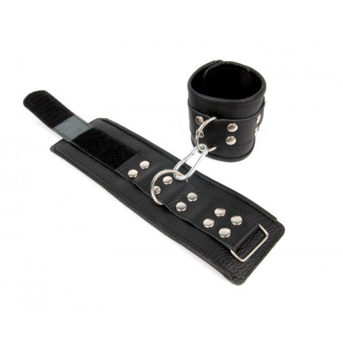 Черные кожаные наручники с заклепками с фиксацией липучками