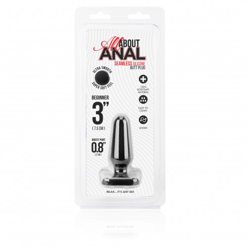 Погрузитесь в мир удовольствий с бесшовным силиконовым анальным стимулятором All About Anal — соблазнительным инструментом как для новичков, так и для опытных профессионалов. Черный плаг из безупречного бархатистого гипоаллергенного силикона. Пробка имеет уникальную приятную текстуру, которая невероятно приятна на ощупь. Игрушка идеального размера для новичков, кто только начинает знакомиться с анальными ласками. Удобная форма позволит использовать плаг и во время секса, и для подготовки к нему. Рабочая длина - 6,5 см.