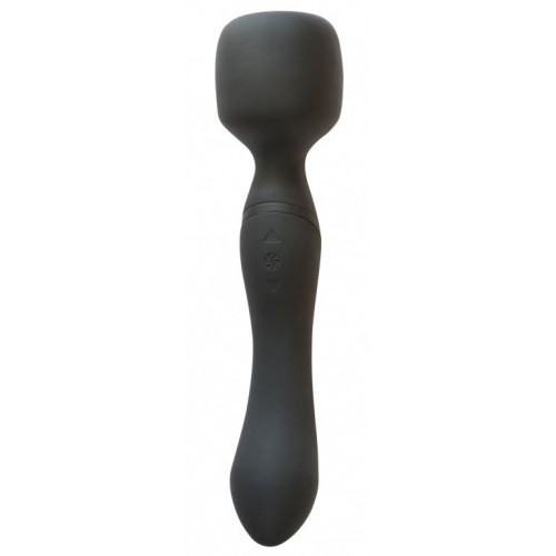 Черный двусторонний вибромассажер Heating Wand с нагревом - 22 см.