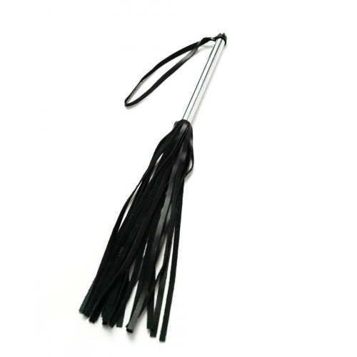 Черный многохвостовый флоггер с металлической рукоятью - 48 см.