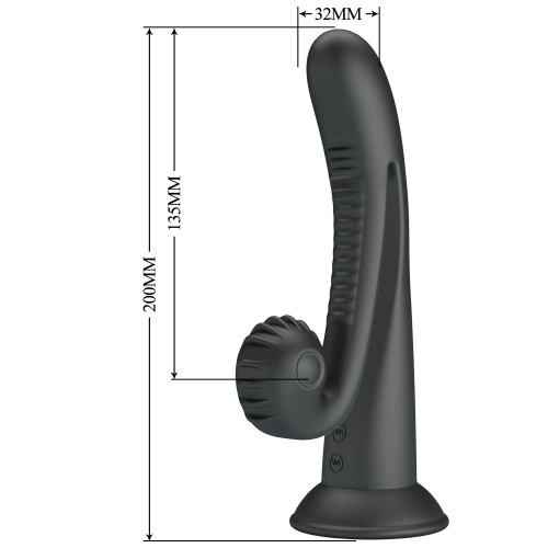 Черный вибратор на присоске с закрученным клиторальным отростком - 20 см.